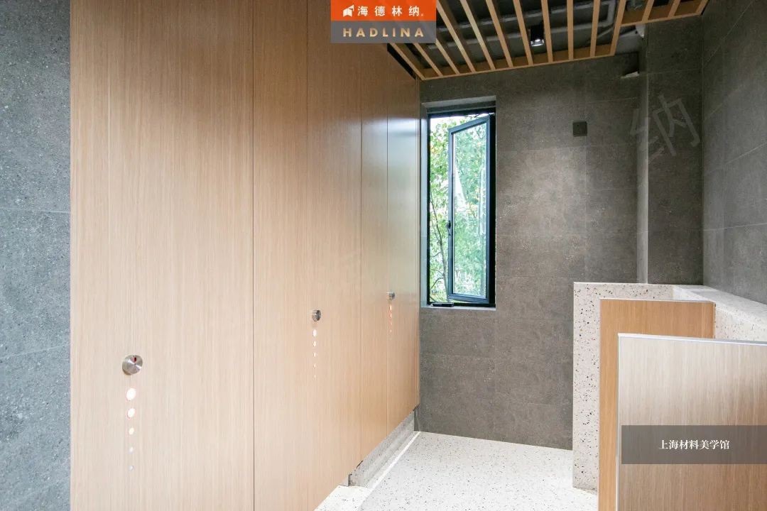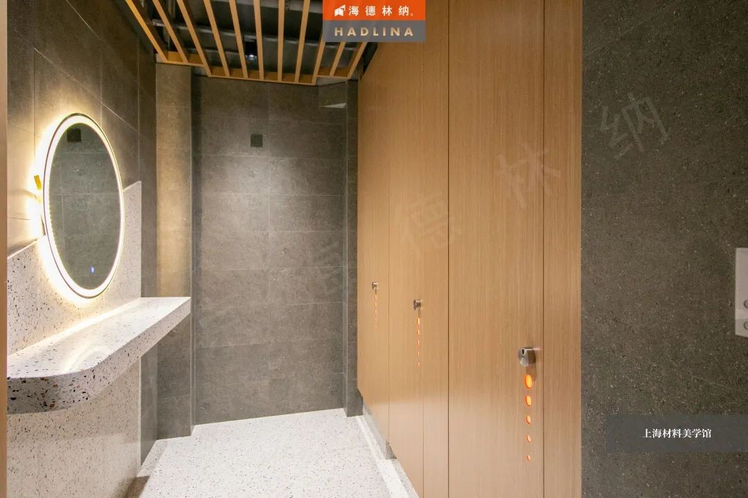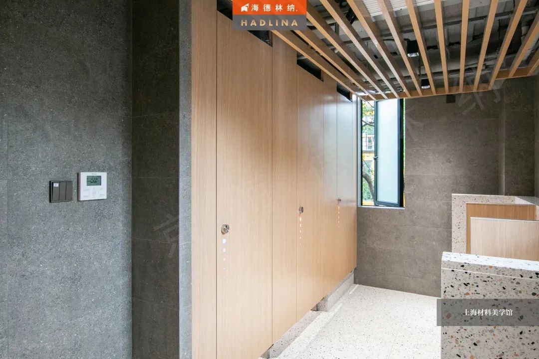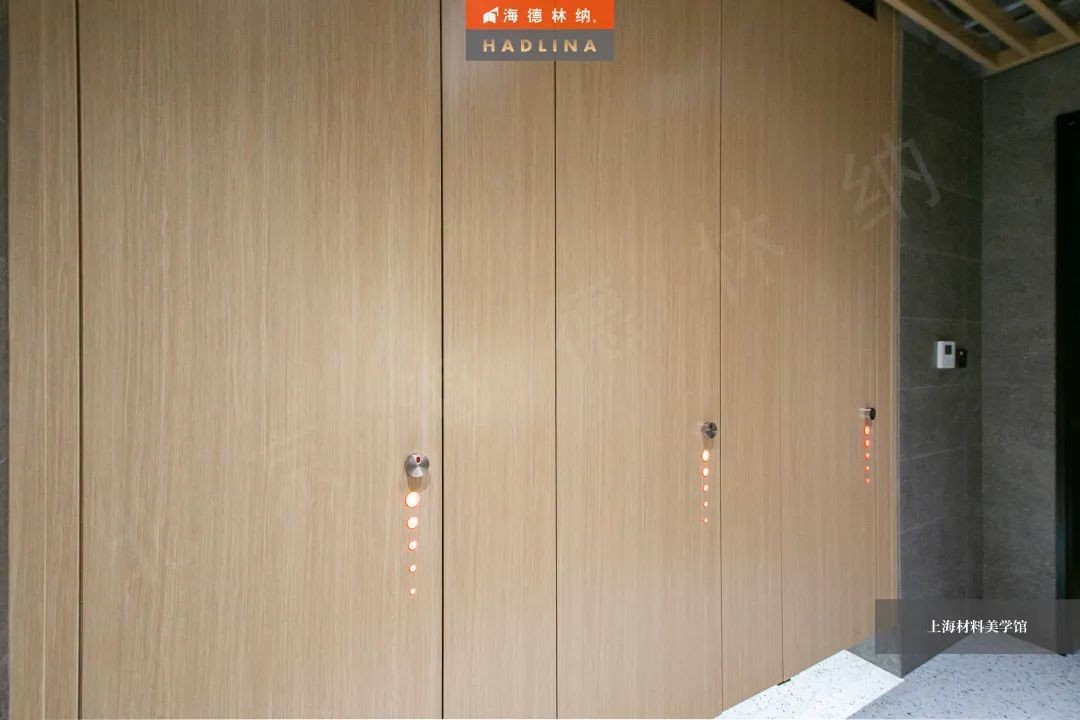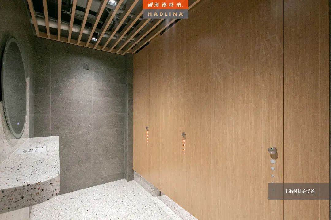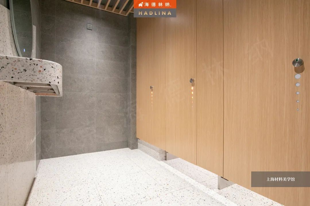 海德林纳®遵循着“集中高品质,彰显高价值”的企业理念,将产品与艺术结合,不断创新。上海材料美学馆卫生间隔断系统由海德林纳®承建,该项目采用海德林纳26mm厚度的隔断板材,将空间合理划分,线条流畅,风格简约,线与面完美结合,美观大气,充斥着艺术之美,与上海材料美学馆的理念相得益彰。